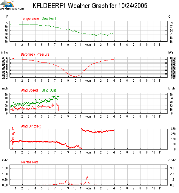 Click on the graph to the left to check out the barometer for Deerfield Beach, the extreme north tip of Broward County. At the moment over 5 million people are without power but thankfully the temperature is down which will prevent deaths usually experienced during heat waves.