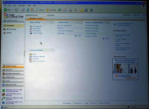 workspace, team website), Business Applications (Customer manager, company calendar, employee directory, project manager, inquiries tracker) and Communications (inbox, calendar, contacts). The most important part of the screSo lets take a look at it (screenshot on the right) — It appears everything a small business needs is at hand here: Web hosting (with built in site designer, page editor, site statistics and fileen is that they also figured out how to (tastefully) include advertising relevant to small business. So not only will they be drawing subscription revenues from this, they will be bringing in the advertising and having yet another way to hit the small business owner with their software – “Web page too restrictive, save a few $$ on Microsoft Money 2006 for Small Business.” This is exactly the kind of a thing that phpGroupWare has been working on for years but never quite hit home with the interface.