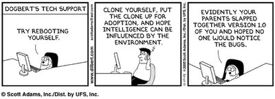 Here are a few cool things I found over the weekend while catching up on some of my favourite blogs: Google Modules is a web site that lists a ton of free, third-party, modules for personalized Google content. You know, the http://www.google.com/ig?hl=en site? Anyhow, that is what I use for my homepage mostly because it integrates a lot of what I look at. The thing that Sarah found was that this Google Modules site has a ton of really cool stuff: del.icio.us plugins, to-do lists, translators, etc. It is just very, very cool and easy to add to your personalized Google site. On the other side of the web dominance war there is the new Mozilla for PocketPC reported by msmobiles.com. If you use PocketIE you're probably not even reading this text, you've already ran to download it. And you should, I just spent a few days without wi-fi and surfing over GPRS is a very painful experience. Did nobody at Microsoft ever consider allowing one NOT to download images? And on the final note, I am back at work plowing through my to-do list in this thirteenth month as I like to look at it. Most people are on their vacations while your sysadmin is at work finishing stuff up for 2005. Here is what I thought to myself several times today: