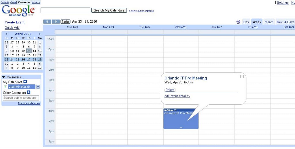 Now I must admit I was not too excited about Google Gcal (yet another beta) but I figured I'd give it a shot to see just what sort of a "me too" they have managed to put out now. Show me one person that had not lost some faith in Google developers after the Gtalk fiasco. Either way, I checked it out and I must say I am very impressed. It hurts when something shames my Exchange backend but this comes relatively close to being the best thing on the market. Agendas, speed, calendar sharing, permissions, public events, the search and most of all – the little things. For example, it gives you tips and examples as you work: When you attempt to add an event it gives you an example "Dinner with Michael 7pm tomorrow"; Such natural stuff has been available in Outlook for quite some time but I bet you're reading about it here the first time. Google is taking the page out of Microsoft's book – It's the little things that matter the most. The horrific privacy policy, beta status, no offline / backup and other deal breaking details aside… this could be a time management solution for a lot of people. Don't expect this one out of the beta for a long time either – there are absolutely no ads on it – anywhere. So how do they make money on this?