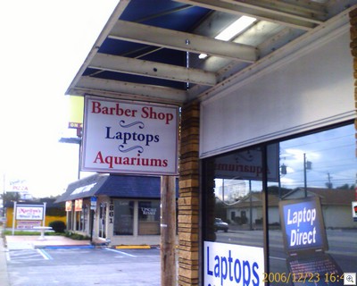 Jimmy Joe Bob’s Barber Shop, Laptops and Aquariums LLC, where our moto is: “If we can’t cut the price of your laptop repair, we’ll install a free aquarium screen saver!”