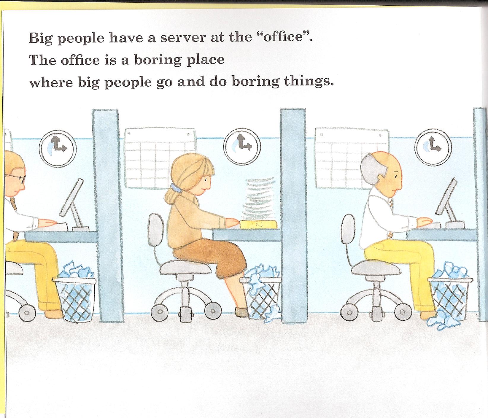 This is a little childrens book that was given away as SWAG at Microsoft’s CES podium. As someone in our group mentioned, “Better get two, cause Windows Home Server won’t be around for long”, so I did. The book is just hilarious and I had to share the scans from it. “Big people have a server at the ‘office’. The ofice is a boring place where big people go and do boring things. Offices  are why big people get grumpy, and say bad words.” – Couldn’t have put it better myself, way to go WHS!