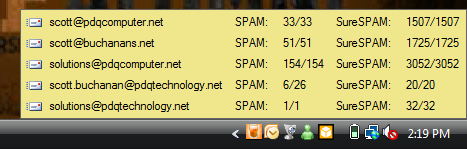 Then they tried to install it on Outlook 2003 and were shocked that Outlook 2007 addins didn’t work on Outlook 2003. So we went to the drawing board and ported all the functionality of the Outlook 2007 Addin to our good ol’ Annoyarizer software, the Windows service that runs in the background and pops up every hour to tell you that you’ve got SPAM!