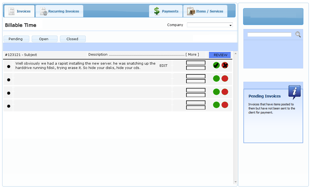 So that’s it, you just send the ticket time entries to the invoice? Well, yeah. Except we like to edit and tweak the hours because we may not bill everything if it took much longer than it should have. Or if we messed up and it took so long because we didn’t know what we were doing. So we like to adjust it. Oh, and we also add time if we didn’t add time before because we need something to bill. Or if we forgot to enter the time.