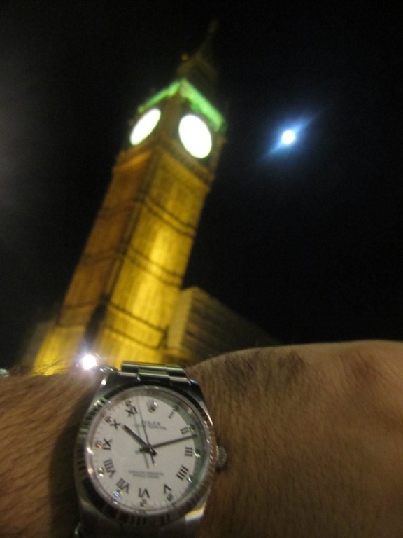 I was in London last month. I snapped the following photo of setting my Rolex to the Big Ben during an evening trip downtown.