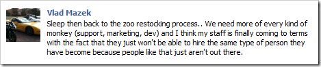 I see this frustration everywhere. The mythical “me” employee. Everyone wants to hire themselves. From the people that make $30K/year to people that run multimillion dollar companies – the person that you want just doesn’t exist. If they do, they are either too smart to work for you or have control & ego issues that prohibit them from reporting to a 20-something.