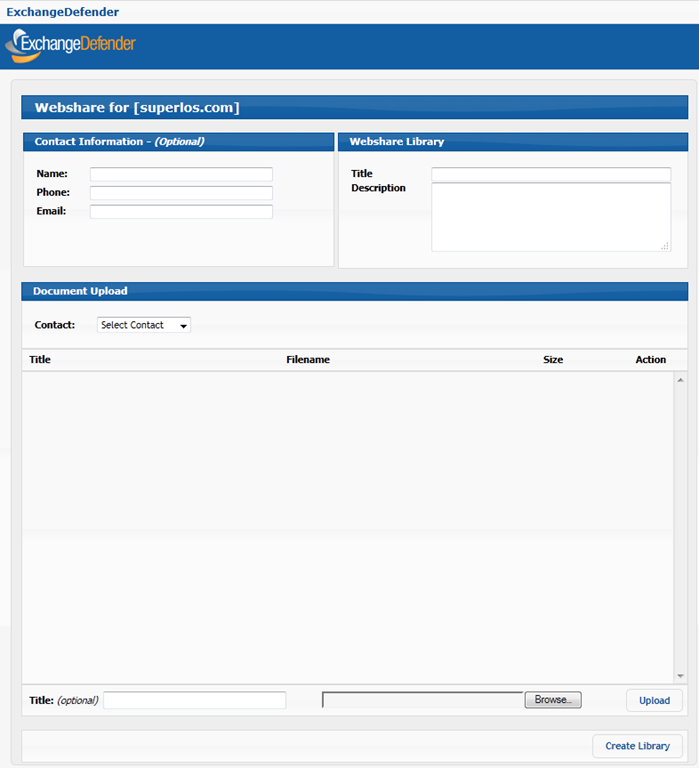 Webshare Library – Clients are asked for the title of the library they are about to create as well as a brief description. This will be emailed to the intended contact.