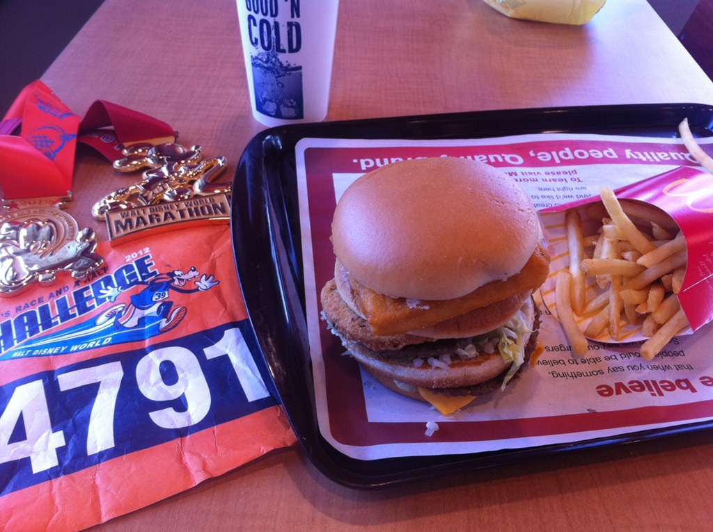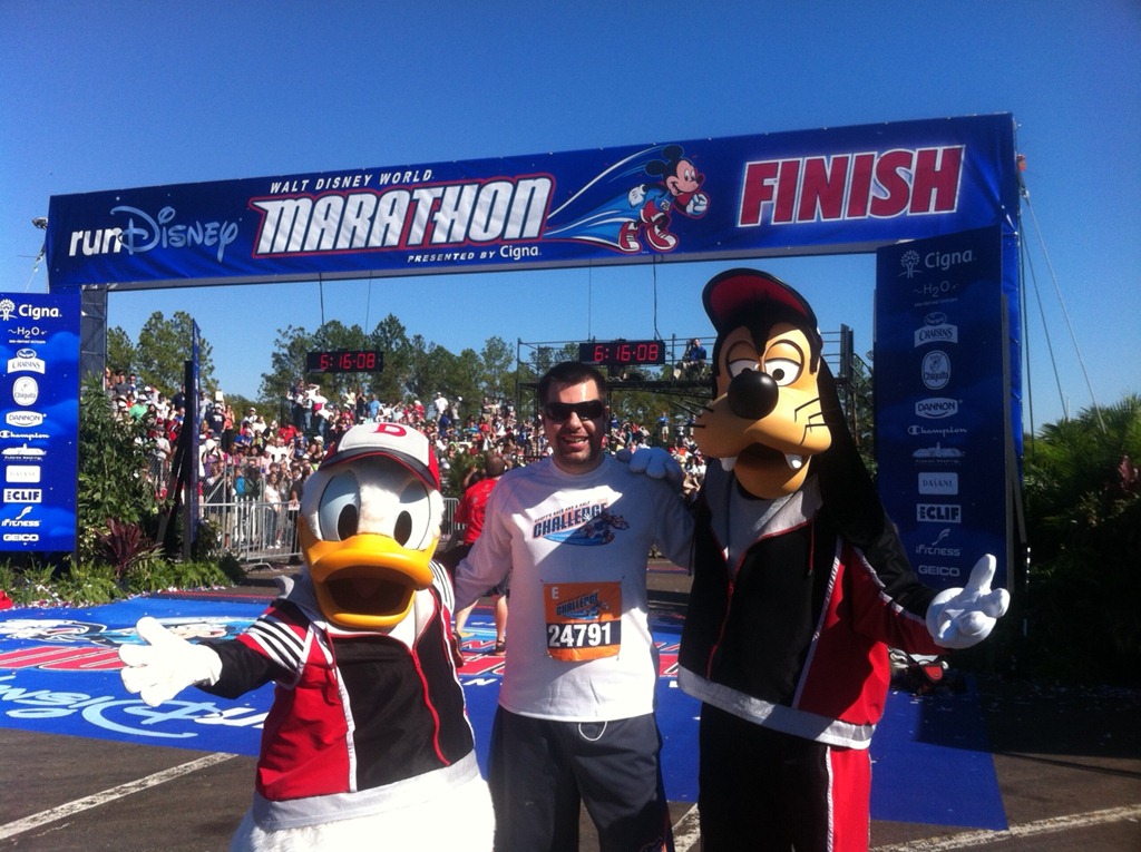 I run a Disney Goofy Run – Half marathon (13.1 miles) on Saturday followed by a full marathon (26.2 miles) on Sunday. Well over 40 miles when you consider the distance to the start line, losing your car in the Disney parking lot, etc.