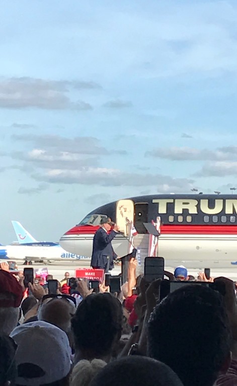 Energy in the airplane hangar was remarkable. People were talking, cheering, high fiving, dancing. Then the huge boom of the jet, even an hour after the event was supposed to start, sent another huge roar through the crowd. The jet pulled up right next to the stage and I don’t care how much you love or hate someone, it takes a lot not to get excited.